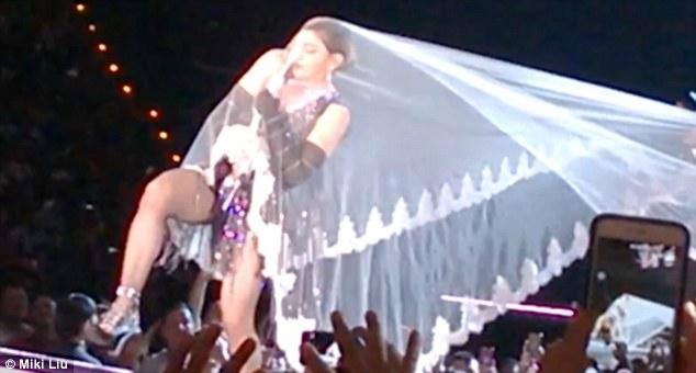 Axar.az xarici mətbuata istinadən xəbər verir ki, konsert zamanı Madonnanın əynindəki tül geyim ayağına dolaşıb və müğənni səhnədə yıxılıb.
