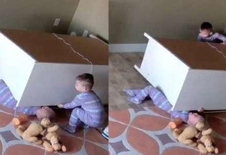 Moderator.az xəbər verir ki, sözügedən video ABŞ-da lentə alınıb. Videodan aydın görünür ki, ikiazyaşlı əkiz oğlanlar evdə təkdirlər. Əkizlər oynayarkən ehtiyatsızlıq edərək otaqdakı paltar şkafını aşırırlar. Qardaşların bir tayı şkafın altından xilas ola bilsə də, digəri şkafın altında qalır, nə qədər çalışsa da oradan çıxa bilmir. Qardaşının köməyinə əkizlərin ikinci tayı yetişir. Qardaşının düşdüyü vəziyyətə bir neçə saniyə tamaşa edən balaca daha sonra əkiz tayını xilas etməyı çalışır. O, əvvəlcə şkafı qaldırmağa çalışır, ancaq ağır olduğunu görüb dərhal bu fikrindən vaz keçir. Ancaq bu onu ruhdan salmır və çevikliklə şkafı kənara itələməyə başlayır. Beləcə paltar şkafını kənara itələyərək qardaşının üzərindən kənarlaşdıran iki yaşlı balaca əkiz tayının həyatını xilas etməyi bacarır.