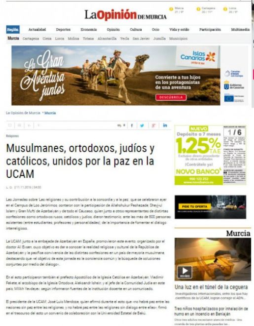 İspaniyanın Laopiniondemurcia.es portalında "Müsəlmanlar, pravoslavlar, yəhudilər və katoliklər UCAM-da sülh naminə birləşdilər" sərlövhəli məqalə dərc olunub.