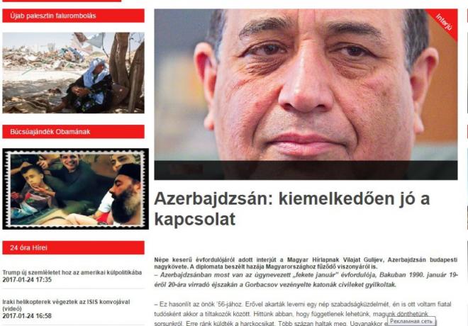 Macarıstanın nüfuzlu “Magyar Hirlap” qəzetində Azərbaycanın bu ölkədəki səfiri Vilayət Quliyevin müsahibəsi dərc edilib. Diplomat müsahibəsində Mixail Qorbaçovun rəhbərliyi ilə Siyasi Büro tərəfindən Azərbaycan xalqına qarşı törədilmiş cinayət nəticəsində yaşanan faciənin ildönümündən söz açıb, habelə Azərbaycan və Macarıstan münasibətlərinin hazırkı vəziyyətindən danışıb.