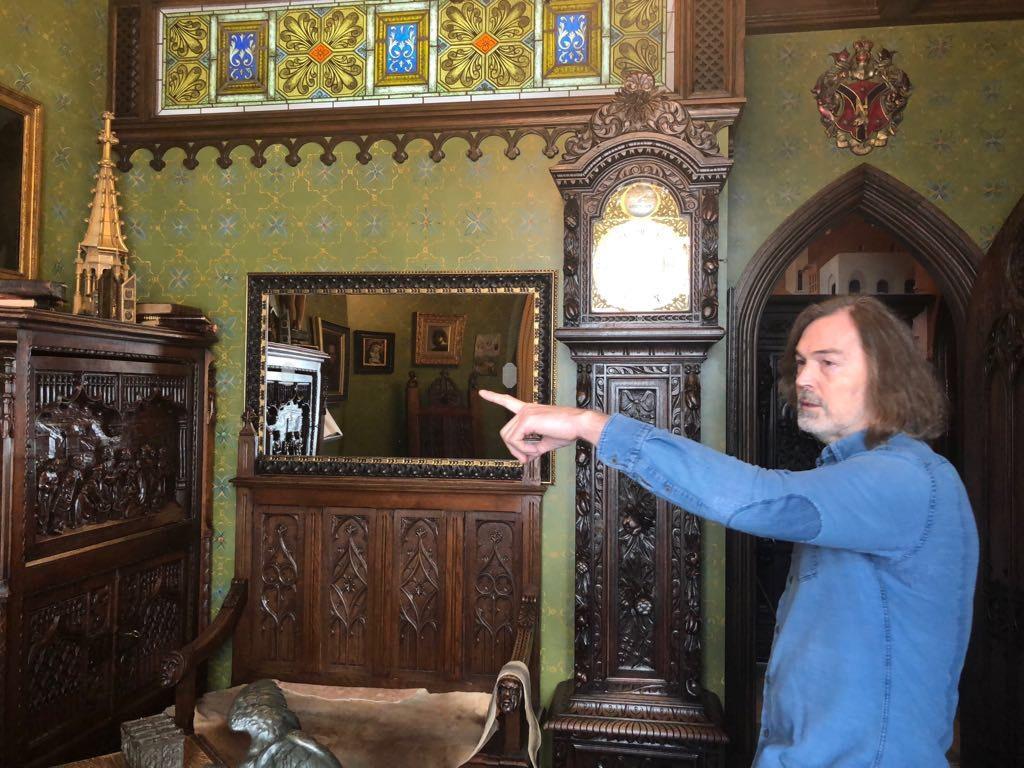 6-cı mərtəbədə liftin qapıları açılanda sanki zaman aşamasına uğrayıram, orta çağın qotik üslublu dəbdəbəli sarayına düşürəm. Hər tərəf freskalar, simgələr, heykəllər, avtoportretlər... Pilləkənin başında göz qapaqları şişkin ev sahibi görünür.