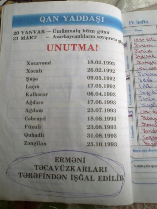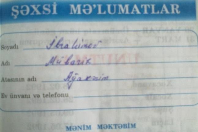 Təhsil eksperti nümunə üçün şəhidimiz, Milli Qəhrəman Mübariz İbrahimovun gündəliyinin şəklini də paylaşıb: