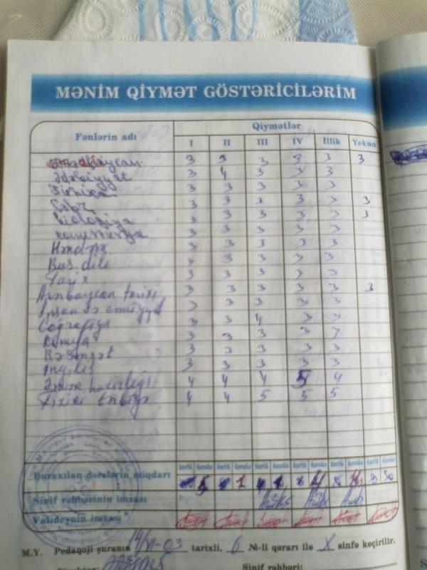 “Məktəb direktorları unutmamalıdır ki, bu gün “3” qiymətinə görə üzlərinə məktəb qapılarını bağladıqları uşaqlar sabahın Mübarizləri ola bilər. Qiymət heç də hər şeyi həll etmir. Hər uşaq mütləq “əla” qiymət almalıdır deyə bir anlayış da yoxdur. Ola bilər bu gün “pis”, “kafi” qiymət alan bir şagird sabah hansısa əməli ilə ölkənin adını yüksəltsin”.