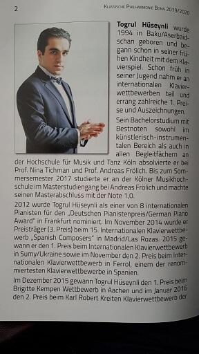 Hər zaman parlaq çıxışları ilə Azərbaycan və dünya səhnələri tamaşaçılarını ayağa qaldıran pianoçumuz Toğrul Hüseynli son günlərdə 1 həftə ərzində Almaniyanın 6 şəhərində möhtəşəm konsertləri ilə yaddaşlarda unudulmaz izlər buraxıb.