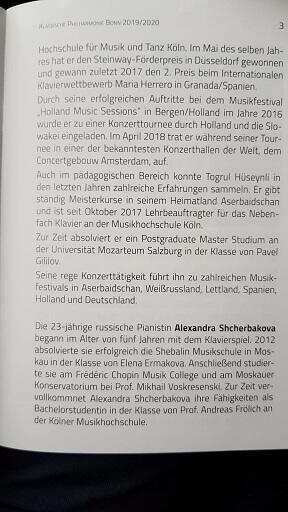 Kult.az xəbər verir ki, Almaniyanın aparıcı şəhərləri olan Berlin, Münhen, Ştutqart, Hannover, Bilefelt və Bonn şəhərlərinin böyük salonlarında baş tutmuş konsertləri ölkənin ən məşhur dirijorlarından biri olan, bədii rəhbər və baş dirijor, professor Heribelt Bayselin rəhbərlik etdiyi Bonn şəhərinin Klassik Filarmonik Orkestri müşayiət edib. Konsertin proqramı isə L.V.Bethovenin fortepiano və orkestr üçün 5 saylı Konsertindən təşkil olunub.