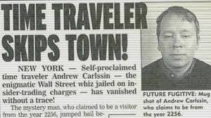 "Səlahiyyətli şəxslərə görə, Andrev Karlssinin iki həftə içində həyata keçirdiyi əməliyyatların təsadüf və ya şans olması ehtimalı yox idi. Şirkətlərin içindən məlumat aldığı ittihamı irəli sürülərək ona ömürlük həbs cəzası istənilib. 44 yaşlı Karlssin 4 saat davam edən və video qeydə alınan ifadəsində özünün 2256-ci ildən gəldiyini, zamanda yolçuluq etdiyini və bu səbəbdən də birjada olacaqları onsuz da bildiyini söyləyib".