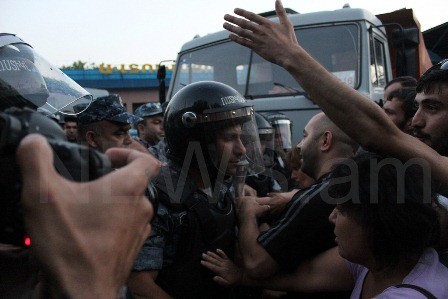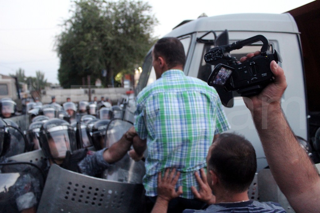 Məlumata görə, insanlar alayın binasını tutan silahlı qrupa hücum edilməməsi, qan tökülməməsi məqsədilə etiraz aksiyaları keçirib. Alayın binasına gedən yolda polis barrikadalar qurub. Polislə nümayişçilər arasında toqquşma baş verib.