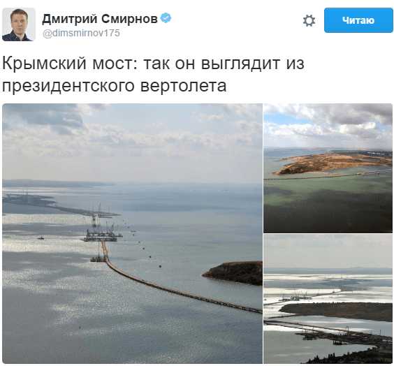 Smirnov paylaşdığı şəkilin üzərində "Krım körpüsü: O, Prezidentin helikopterindən belə görünür", - yazıb.