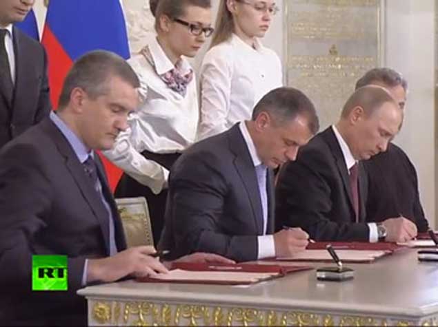 Sənədi Rusiya Prezidenti Vladimir Putinlə Krım Parlamentinin sədri Vladimir Konstantinov imzlayıb. Putinin bu addımından sonra qərarın tam qüvvəyə minməsi üçün Konstitusiya məhkəməsi və Duma sənədi ratifikasiya etməlidir.