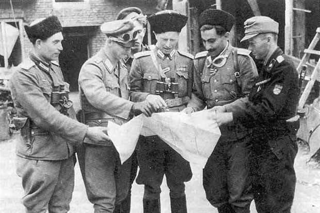 kazak formasında olanlar Vlasovun ordusunda xidmət edən ruslardır.