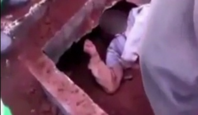 xilasedici qruplar məzardan çıxmağa çalışan adamı yarı huşsuz halda
