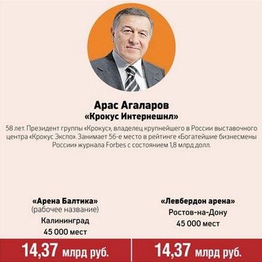 Ağalarovun şirkəti Rostov və Kalininqrad şəhərlərində Dünya Çempionatnın keçiriləcəyi stadion inşa edəcək.