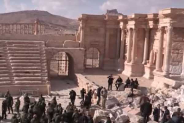 Görüntülərdə Palmiraya gedən musiqiçilərin qədim şəhərin dağıntıları arasında onlarla insana konsert verməsi yer alıb.