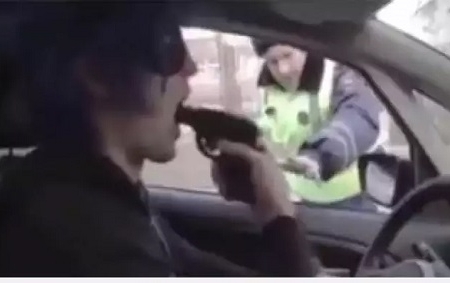 Sürücünün avtomobildən düşməsini tələb edən yol polisi ondan hər ehtimala qarşı “silahı” kənara qoymağı xahiş edir.