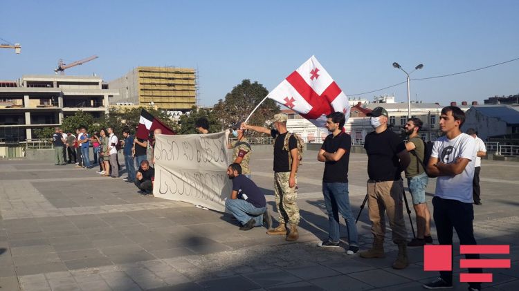 Gürcüstanın hökumət administrasiyasının binası qarşısında Ermənistanda yerləşən qədim gürcü dini abidəsinin hazırkı vəziyyəti ilə bağlı aksiya keçirilib.