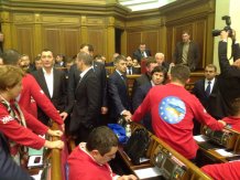 "Axar.az"ın Ukrayna mətbuatına istinadən verdiyi məlumata görə, bundan sonra Baş nazir öz qorumalarının müşayiəti altında zalı tərk etmək məcburiyyətində qalıb.