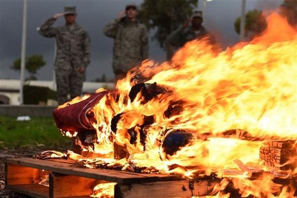 Türkiyənin İncirlik hərbi bazasındakı ABŞ Hərbi Hava Qüvvələrinin 39-cu Hava Birliyi Komandanlığına məxsus ABŞ bayrağı mərasimlə təqaüdə buraxılaraq yandırılıb.