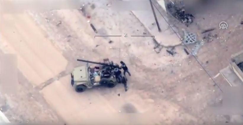 Mülki geyimdə olan PKK-PYD terrorçularının Türkiyə ərazilərini vurması Türkiyə Silahlı Qüvvələrinə məxsus PUA-larla görüntülənib.