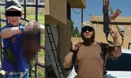 İŞİD terrorçusu kəsdiyi başı oğlunun əlinə verib fotoşəkilini çəkib.