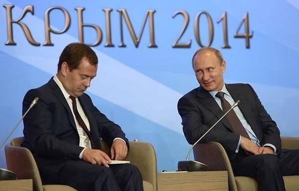 Axar.az xəbər verir ki, rus hökumətinin Krımda keçirilən toplantısı zamanı Medvedev yatan vəziyyətdə kameralara tuş gəlib.