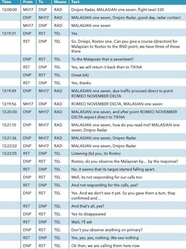 əməkdaşları ilə MH17 kodu altında ünsiyyətə girən pilotlar son