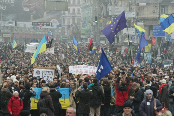 Narıncı inqilab iştirakçıları koalisiyasının mətbuat katibi bildirib ki, aksiyanı dağıtmaq üçün minə yaxın xüsusi polis dəstəsi - "Berkut"un əməkdaşları cəlb olunub.