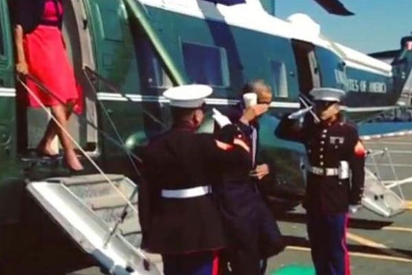 Axar.az xəbər verir ki, Hərbi Dəniz Qüvvələrinin əsgərləri ilə görüşən Obama onlarla qeyri-adi şəkildə - helikopterdən enə-enə əlindəki qəhvə fincanı ilə salamlaşıb.