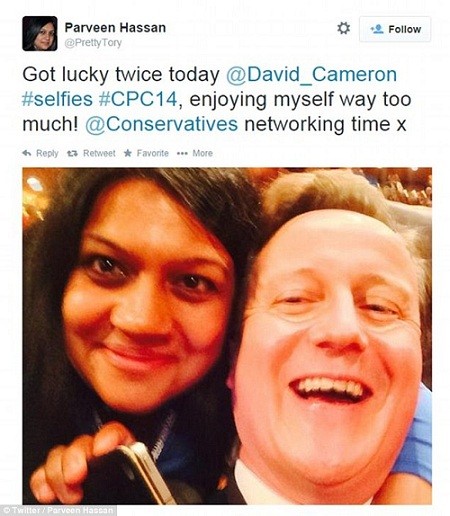Baş nazirlə bir gün ərzində iki dəfə selfi çəkdirən 41 yaşlı Parvin Hassan Kameronun onun təkliflərinin heç birinə etiraz etmədiyini bildirib. Hətta Baş nazir selfi zamanı poza da verib.