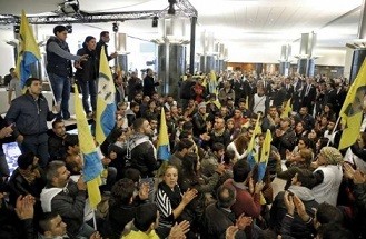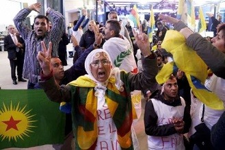 Axar.az xəbər verir ki, Belçikanın paytaxtı Brüsseldə Kobaniyə edilən hücuma etiraz edən yüzlərlə insan Öcalan posterləri ilə AP binasına daxil olub.