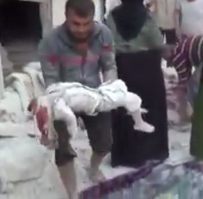 Axar.az xəbər verir ki, şəhərin sünnilər yaşayan bölgəsinə edilən hücum nəticəsində iki körpə dağıntılar arasında qalıb.