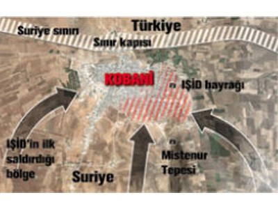 Axar.az xəbər verir ki, tərtib olunan xəritədə Kobani küçələrində olduqlarını göstərən İŞİD üzvləri ABŞ və koalisiya güclərinə aid reaktiv təyyarələr tərəfindən bombardman edilib.