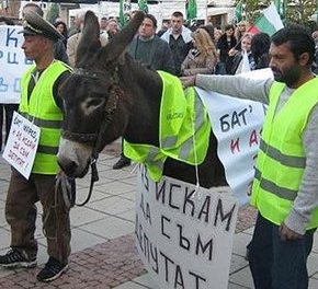 Əldə etdiyi millət vəkili sayına etiraz edən aksiya iştirakçıları yanlarında gəzdirdikləri eşşəyi türk əsilli millət vəkili kimi göstəriblər.