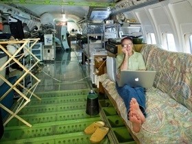 Axar.az xəbər verir ki, Bryus Kampel adlı bir elektrik mühəndisi meşədə yerləşdirdiyi təyyarəni ev şəklində dizayn edib və orada yaşamağa başlayıb.