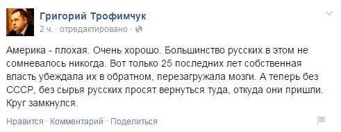 Axar.az xəbər verir ki, bu açıqlama ilə rusiyalı politoloq Qriqori Trofimçuk öz Feysbuk səhifəsində çıxış edib. O, Putin hakimiyyətinin son 25 ildə rusları yenidən geri dönməyə səslədiyini bildirib: