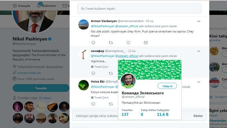 Axar.az xəbər verir ki, Paşinyanın Zelenskinin qələbəsinə həsr olunmuş 2 təbrik tviti ukraynalı və ermənilər arasında qızğın mübahisə yaradıb.