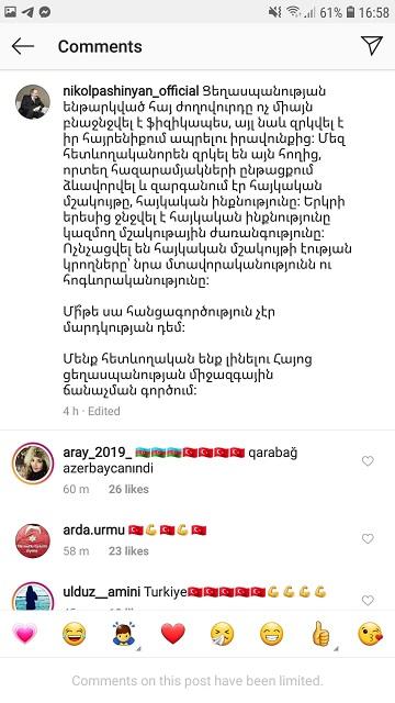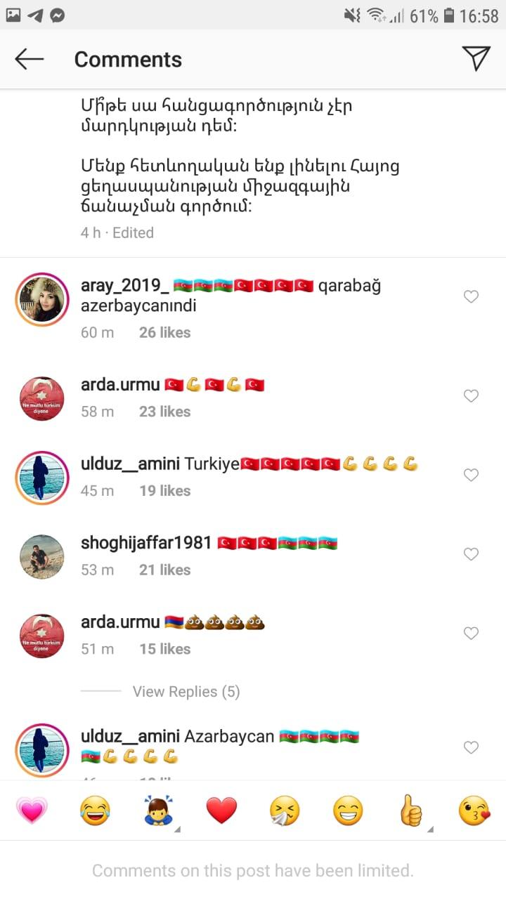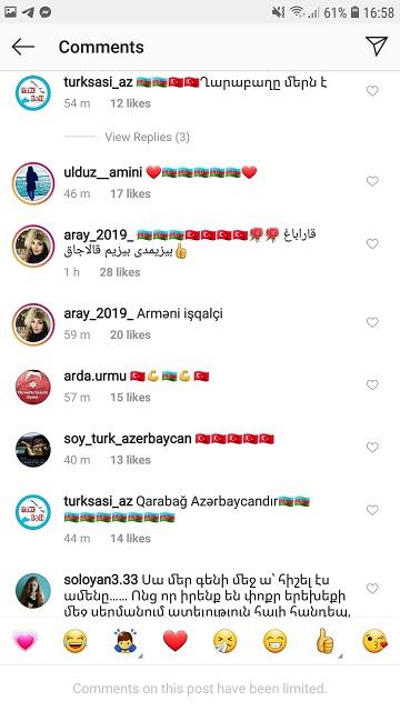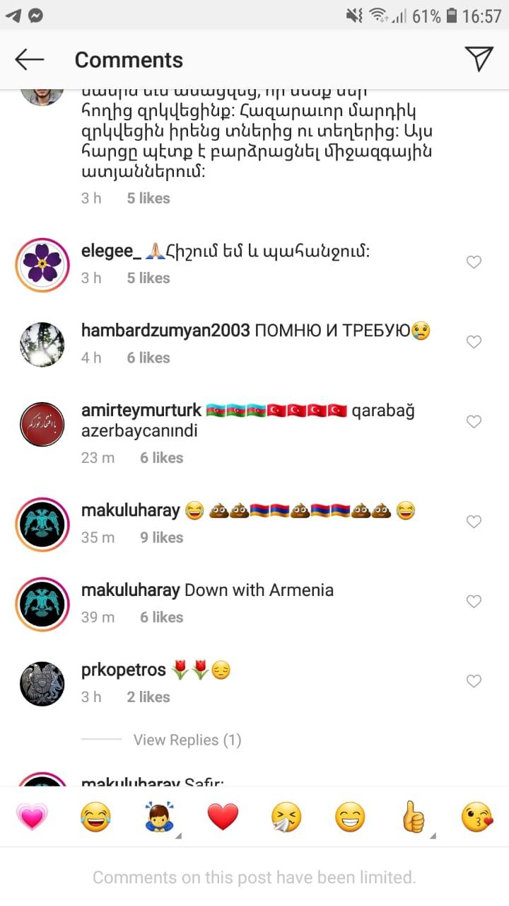 Axar.az xəbər verir ki, istifadəçilər paylaşıma “Qarabağ Azərbaycanındır”, “Azərbaycan”, “Türkiyə” kimi şərhlər yazıb.