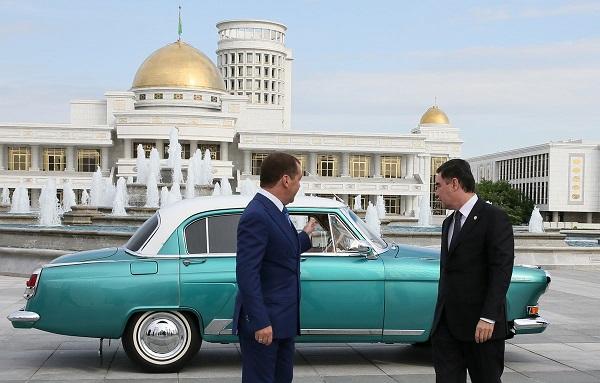 Türkmənistan Prezidenti Qurbanqulu Berdiməhəmmədov “QAZ-21 Volqa” avtomobili ilə Rusiyanın Baş naziri Dmitri Medvedyevin arxasınca otelə gələrək, onu Aşqabadda avtomobil gəzintisinə çıxarıb.