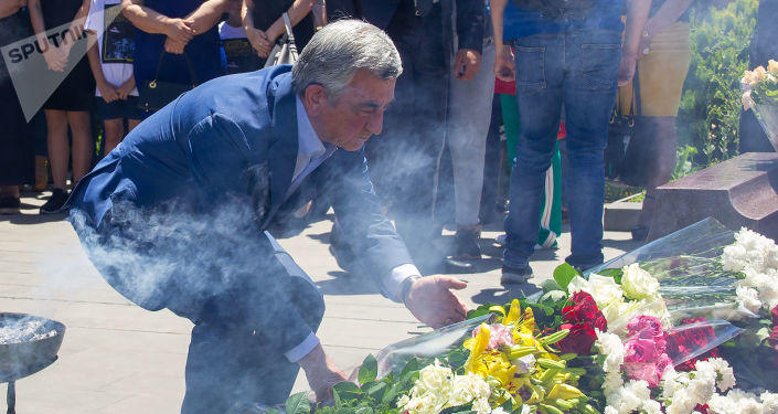 Sərkisyanı İrəvanın sabiq meri Taron Markaryan və Respublika Partiyasının nümayəndələri müşayiət edib.
