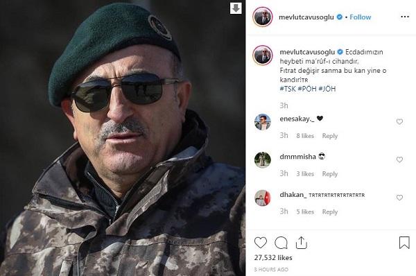 Türkiyənin Xarici İşlər naziri Mövlud Çavuşoğlu sosial şəbəkə hesabından paylaşdığı foto ilə Suriyada əməliyyat öncəsi türk əsgərlərinə dəstək olub.