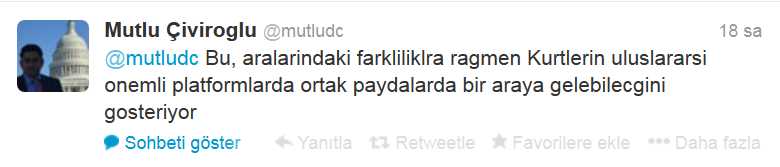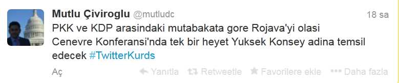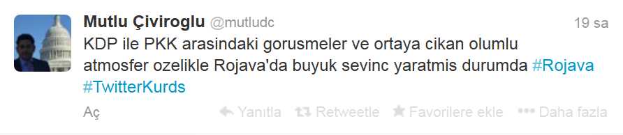"KDP (Kürdistan Demokat Partiyası) ilə PKK arasındakı müzakirələr və ortaya çıxan müsbət atmosfer xüsusilə Rojavada böyük sevincə səbəb olub. PKK və KDP arasındakı razılığa görə Rojavanı Cenevrə Konfransında Yüksək Şura adına təkcə bir heyət təmsil edəcək. Bu aradakı fərqli düşüncələrə rəğmən, kürdlərin birlik şəklində beynəlxalq arenada görüşəcəklərini göstərir.