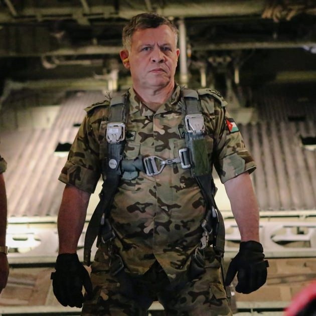 paylaşılan şəkildə kral Abdullahın hərbi forma və silah-sursatla