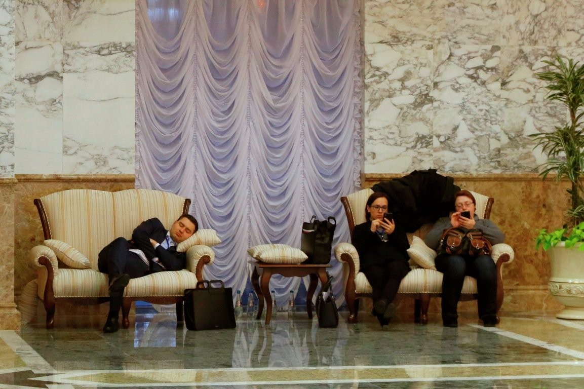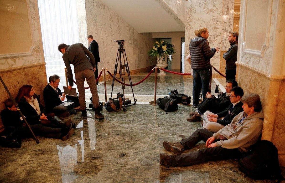 Axar.az xəbər verir ki, görüş təkcə danışıqlar aparan liderlər üçün deyil, 14 saatdan çox davam edən konfransı işıqlandıran KİV nümayəndələri üçün də asan keçməyib.