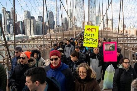 Axar.az xəbər verir ki, aksiya yəhudilərə qarşı nifrət zəminində Nyu York və Nyu Cersidə hücumların sayının çoxalmasına etiraz əlaməti olaraq keçirilib.