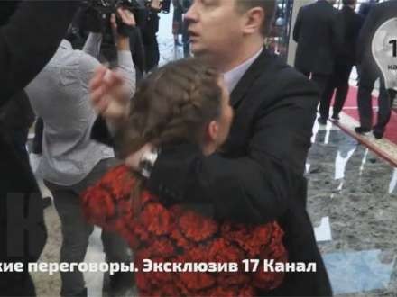 Minskdə jurnalist Ukrayna Prezidenti Pyotr Poroşenkonun qarşısına çıxaraq sual vermək istəyərkən saxlanılır. Kadrda görünür ki, mühafizəçi jurnalistin başını sinəsinə sıxır.