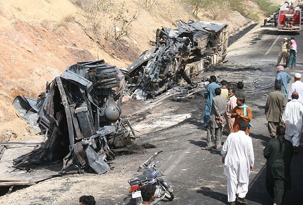 Pakistanın cənubundakı Sind əyalətində qəzaya uğrayan mikroavtobusun yanacaq çəni partlayıb.