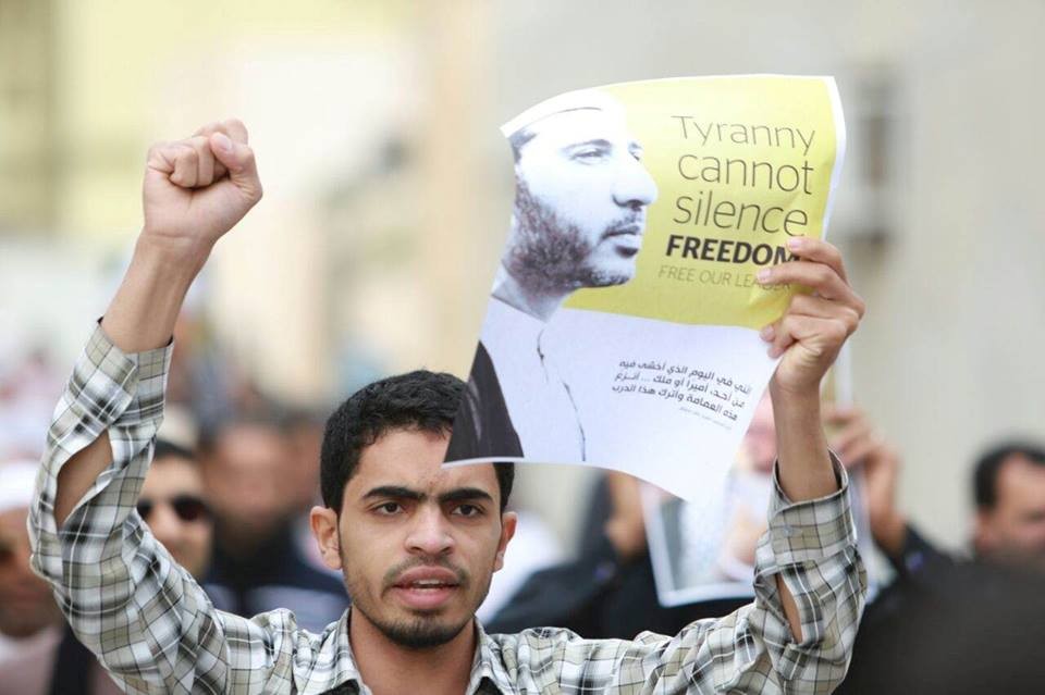 Etirazçılar Bəhreynin Biladil Xadim bölgəsində Şeyx Əli Salmanın qeydsiz və şərtsiz azadlığa buraxılmasını tələb edərək yürüş keçiriblər.