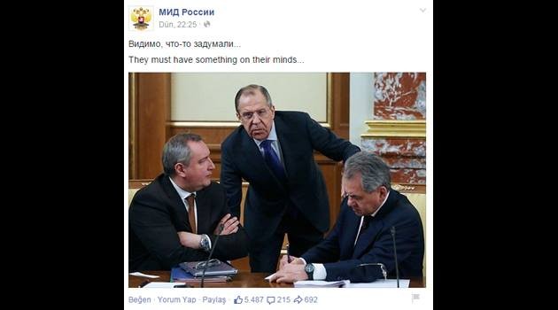Ən maraqlısı isə şəkil paylaşılan zaman yazılan şərh olub. Lavrov, Roqozin və Şoyqunun birgə çəıkildiyi şəkilin başlığında rus və ingilis dillərində "Çox güman ki, bir şey planlaşdırıblar" ifadəsinə yer verilib.