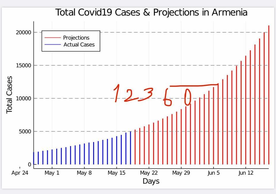“Bu dataloji analiz göstərir ki, hazırda Ermənistanda 100 mindən çox koronavirus daşıyıcısı var”.