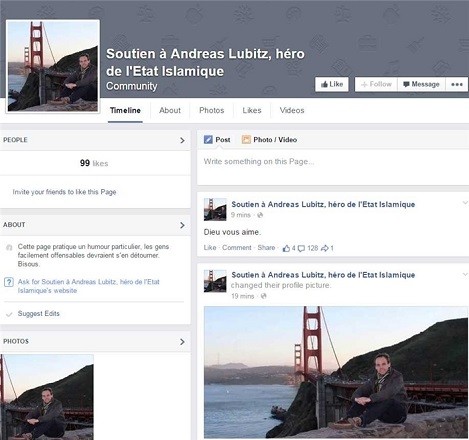 Əsas pilotun kabinədən çıxmasından istifadə edərək qapını bağlayıb təyyarəni başı aşağı yerə salan Andreas Lubitzin kimliyi açıqlanandan sonra Feysbukda "İŞİD qəhrəmanı Anders Lubitzə dəstək" adlı səhifə yaradılıb.