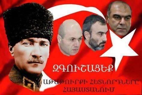 olun, Atatürkün davamçıları Ermənistanda" sözləri yazılan fotolar